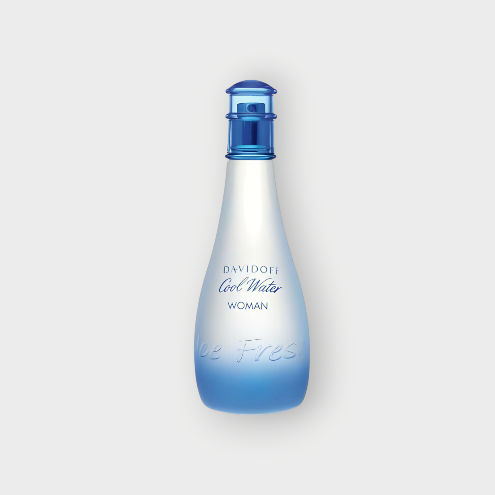 - زجاجة بتصميم كلاسيكي بلون أزرق جليدي، يعكس إحساس البرودة.