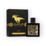 - زجاجة ذات تصميم جريء وداكن تعكس الإثارة والغموض.