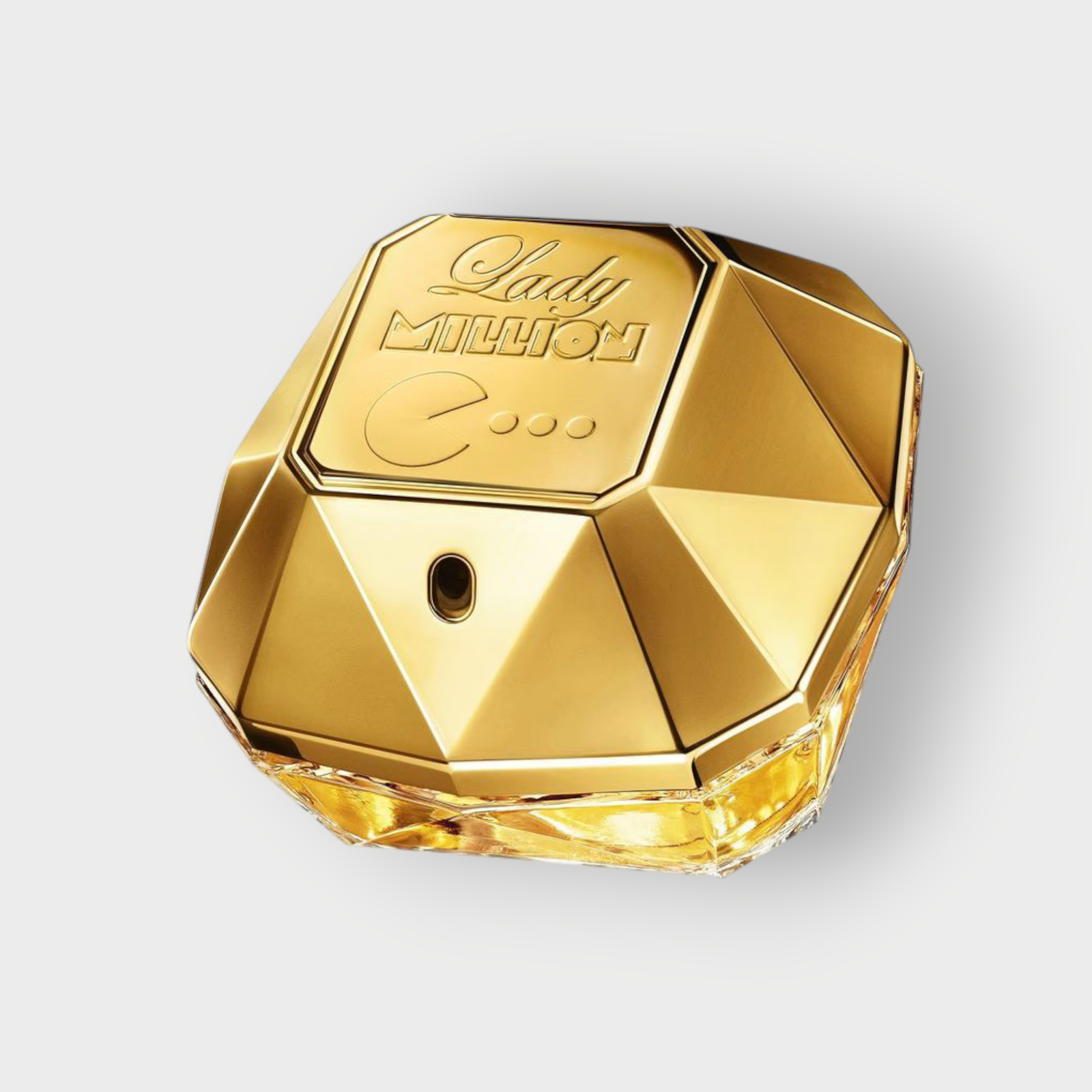- زجاجة أيقونية ذهبية على شكل ماسة، بتصميم خاص مستوحى من لعبة باك-مان.