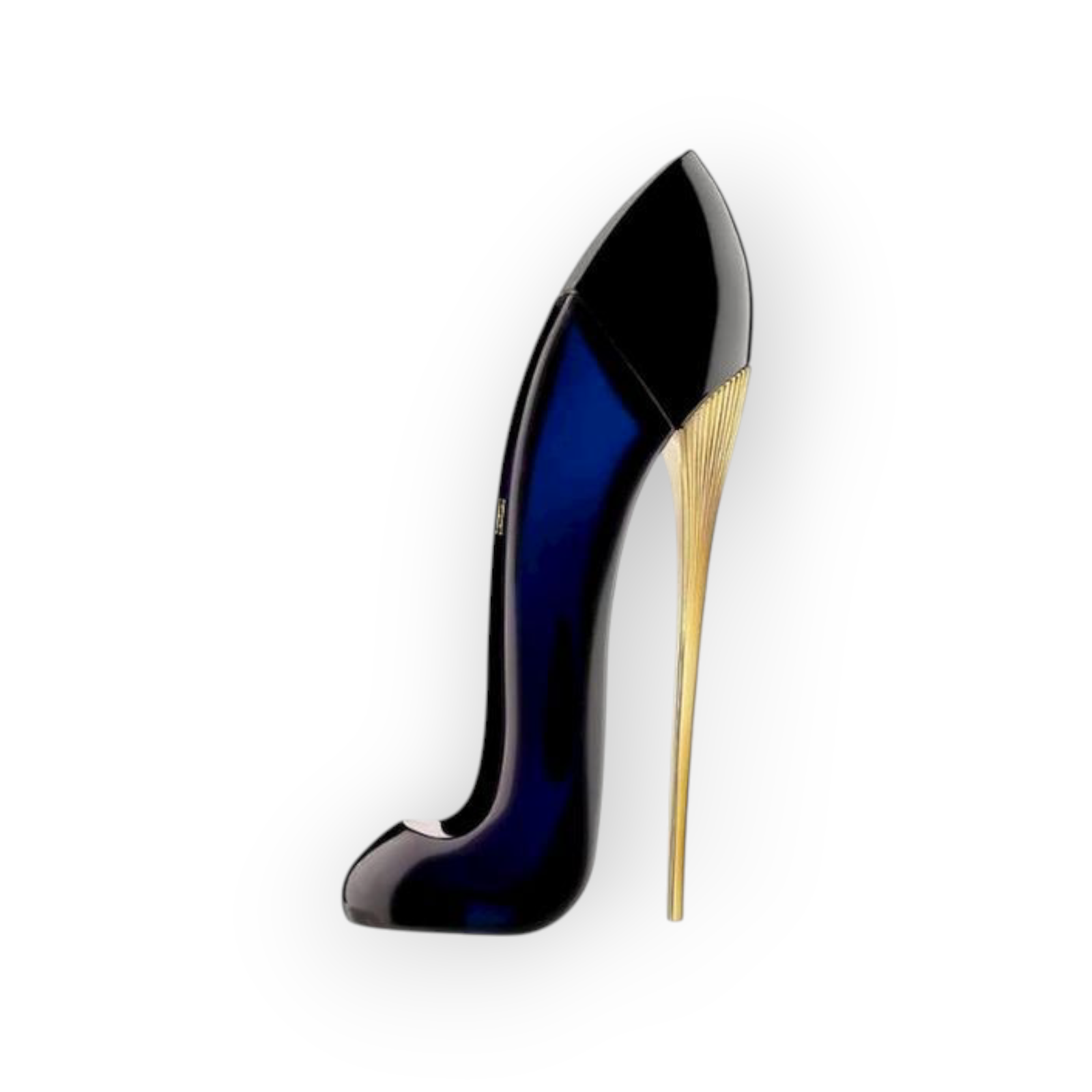 - الزجاجة المميزة على شكل حذاء بكعب عالٍ بلون أزرق داكن (كحلي) ترمز للقوة الأنثوية .