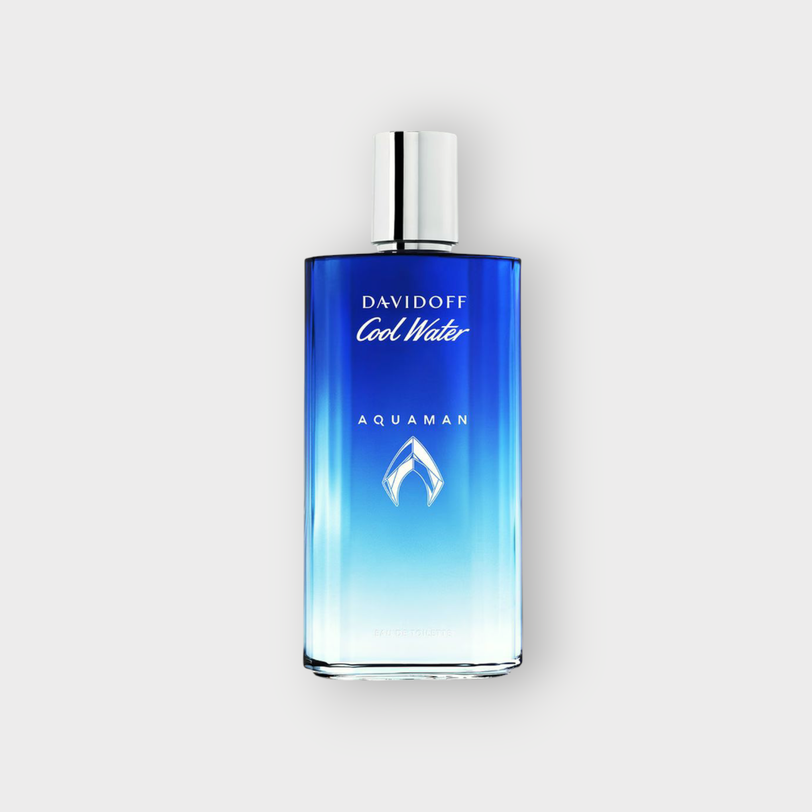 - زجاجة أيقونية بتصميم خاص مستوحى من شخصية أكوامان، تعكس القوة والغموض.