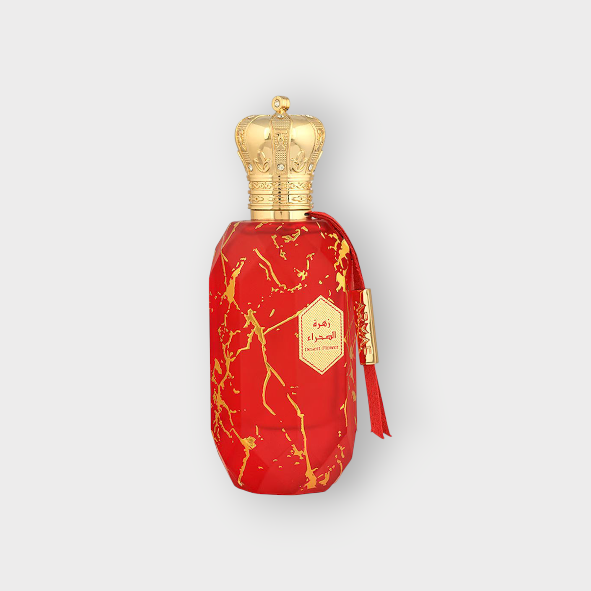 عطر ديزرت فلاور (زهرة الصحراء) هو احتفال بالجمال النادر والألوان الزاهية التي تزدهر في قلب الصحراء، مصمم ليناسب الجنسين. يتميز هذا العطر بتركيبة زهرية فاكهية دافئة تبدأ بنفحات حلوة من الفواكه الاستوائية واليوسفي، تليها باقة زهرية من الورد والياسمين في القلب، ليترسخ على قاعدة حسية من الفانيليا والمسك. يمنح العطر حضورا متألقا وجذابا، وهو مثالي لمن يبحث عن رائحة مبهجة ومميزة، تجمع بين النضارة الفاكهية والدفء الزهري، عطر يجسد الأنوثة المشرقة والجمال الطبيعي.