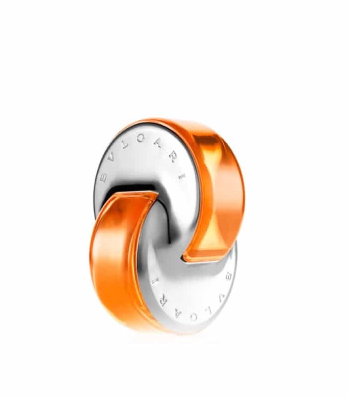 - زجاجة بتصميم أيقوني على شكل حلقات بلون برتقالي، يعكس سحر الهند.