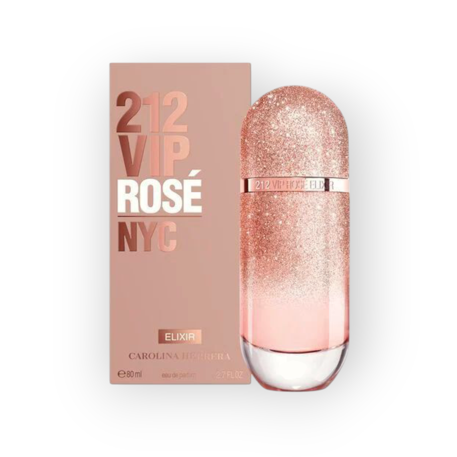 - الزجاجة على شكل كبسولة باللون الذهبي الوردي ترمز إلى الحضور الحصري (VIP).