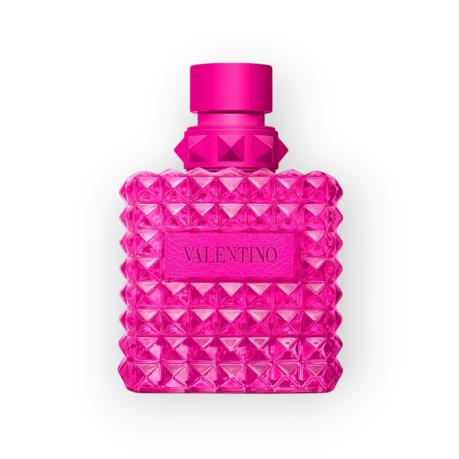 - الزجاجة الأيقونية ذات المسامير باللون الوردي الزاهي.