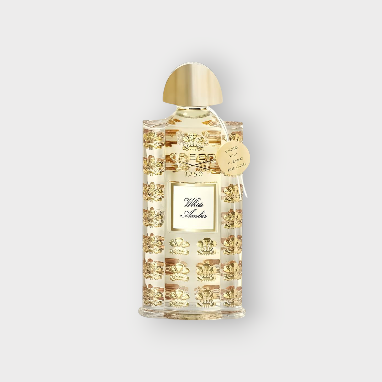 - الزجاجة البيضاء الأنيقة، تعكس النقاء والضوء الأبيض للعنبر.