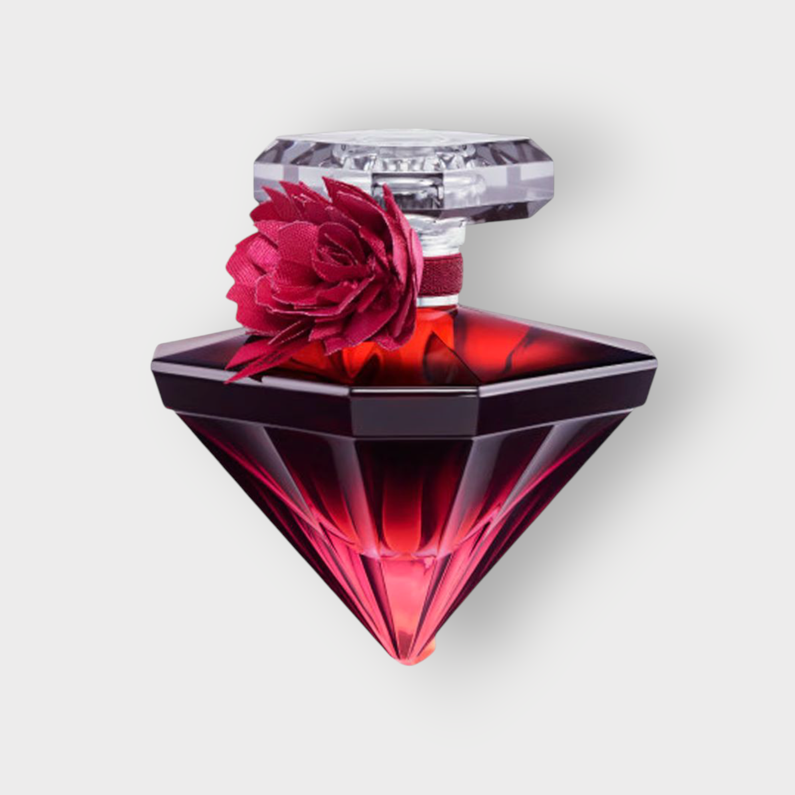- زجاجة ماسية بلون قرمزي داكن، تعكس تركيز العطر وعمقه.