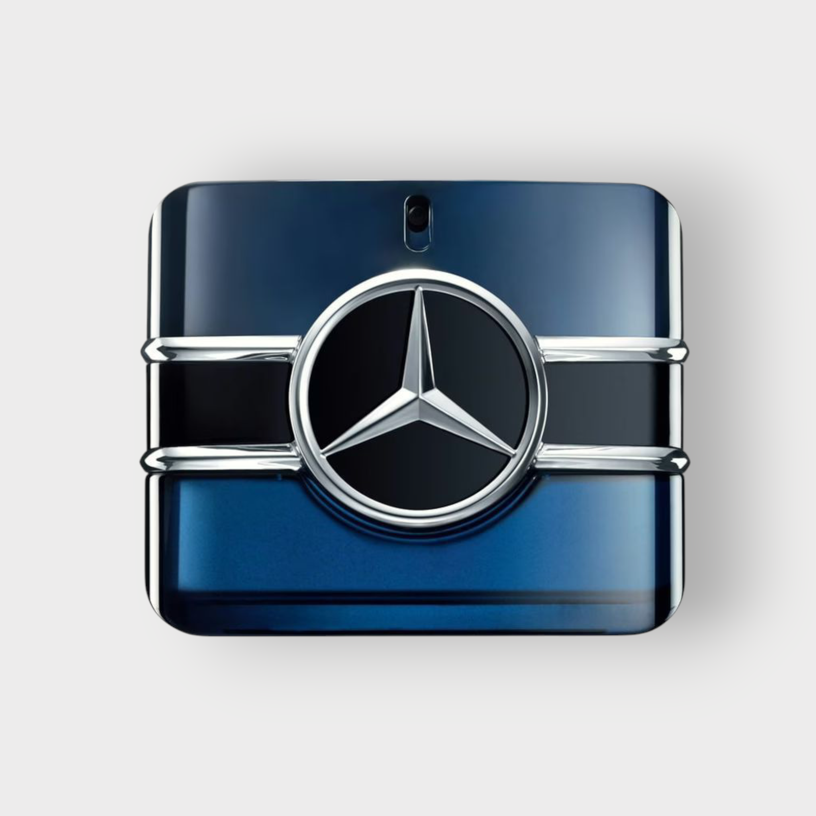 - تأتي الزجاجة بتصميم راقٍ وغطاء على شكل شعار النجمة الثلاثية الأيقوني.