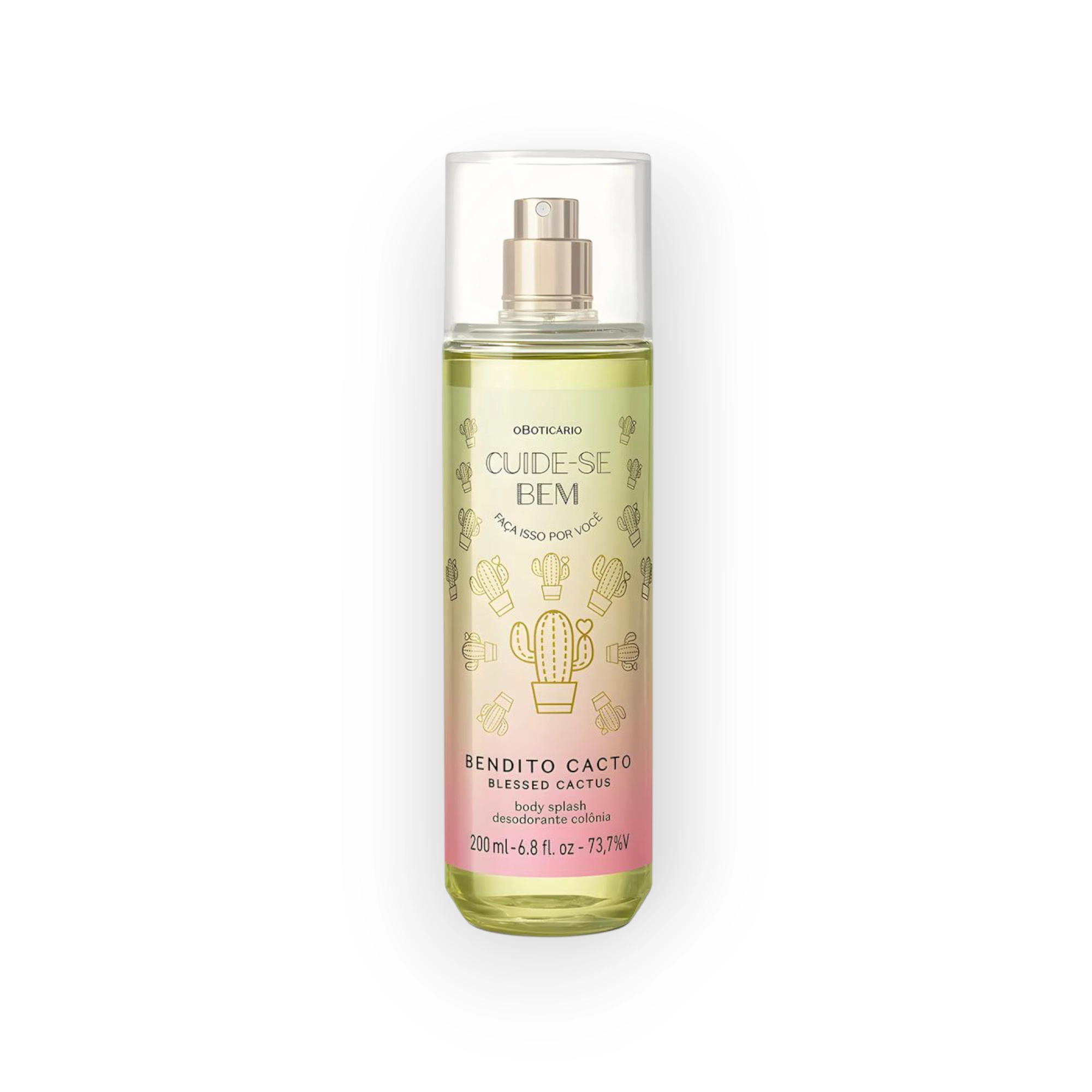 معطر الجسم كويد-سي بيم بينديتو كاكتو (Cuide-se Bem Bendito Cacto – الصبار المبارك) هو رذاذ منعش وغير تقليدي يجسد قوة الطبيعة والجمال غير المألوف. يتميز بتركيبة خضراء زهرية منعشة وحادة، تتركز حول نوتات الصبار والعصاريات مع لمسة من الأزهار الناعمة والمسك. إنه مصمم ليمنحك انتعاشاً غير تقليدي وشعوراً بالنشاط والتميز، مما يجعله مثالياً للمرأة التي تبحث عن رائحة جريئة ومختلفة. استخدميه في الأوقات التي تحتاجين فيها إلى دفعة من الطاقة والتميز.